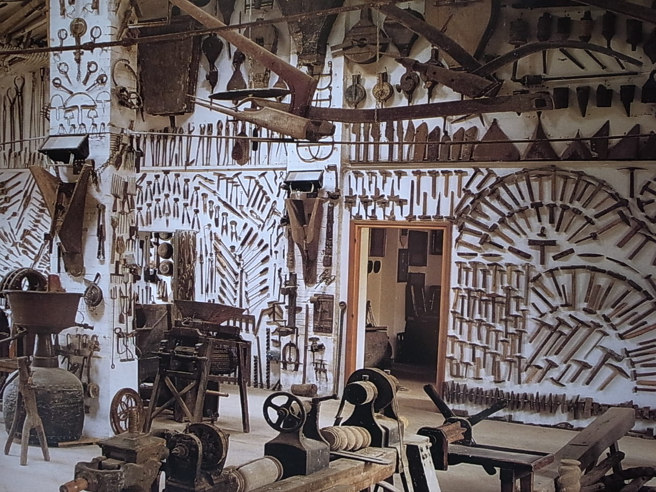Da Sala Baganza ci spostiamo in una frazione di Collecchio, per la precisione a Ozzano Taro: qui troviamo il Museo Ettore Guatelli, una collezione di 60 mila oggetti di uso quotidiano del mondo contadino. La raccolta ha un enorme valore etnografico: gli oggetti sono testimonianza di un mondo artigianale e pre-industriale ormai estinto, e ci permettono di capire anche un po’ della mentalità e dell’immaginario di chi possedeva queste cose. La mossa geniale di Guatelli è stata quella di collocare una quantità enorme di oggetti gli uni vicino agli altri, in maniera apparentemente casuale, ma che in realtà vanno a formare un disegno, un motivo ben preciso, che conferisce rilievo artistico all’intera operazione.
